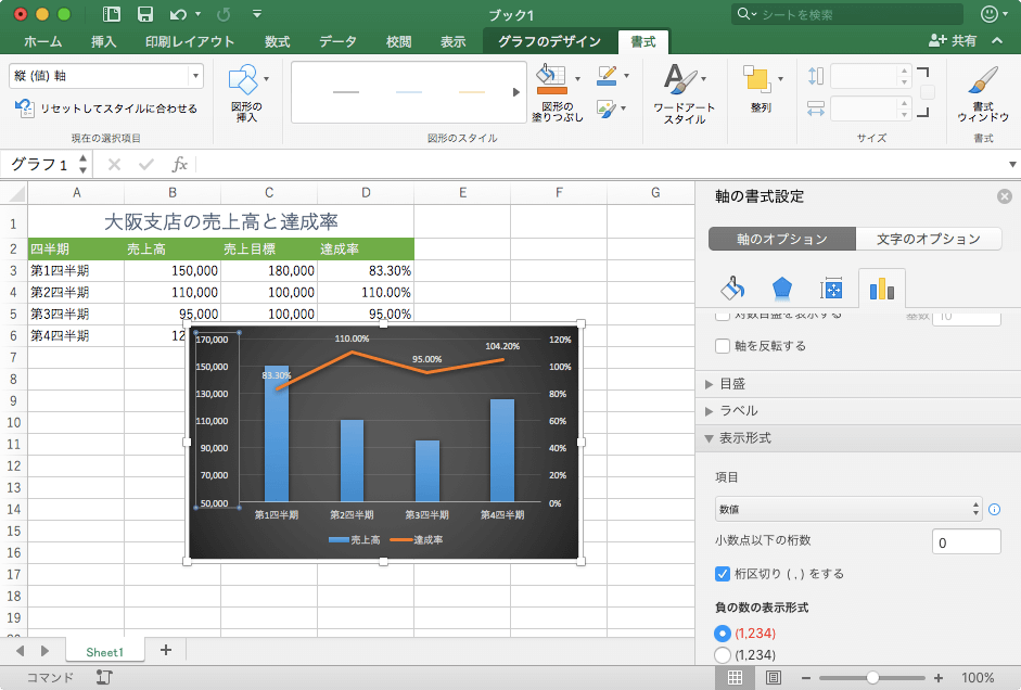 Excel 2016 For Mac グラフの数値軸を桁区切りスタイルにするには
